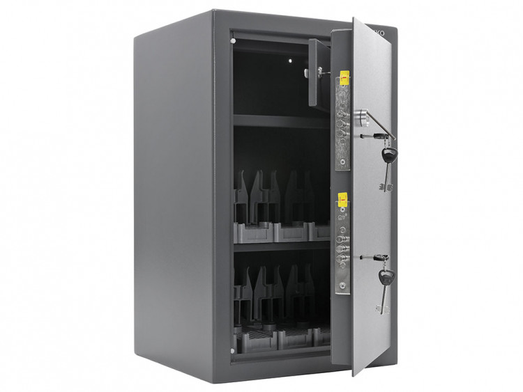 Армейский шкаф ШХО-10 ПУАртикул: 36208Нет в наличии 28 700 Р 25 790 РЭкономия: 2 910 Р Армейский шкаф ШХО-10 ПУ теперь в вашей корзине покупок ОписаниеХарактеристикиОтзывыДокументацияДоставкаОплатаОписание Армейский шкаф ШХО-10 ПУ Варианты наполнения: Для хранения 12 пистолетов Макарова (ПМ) или 12 пистолетов Ярыгина (ПЯ) или 10 универсальных ложементов (ПУ).Ложементы для пистолетов в комплект не входят и приобретаются отдельно в нужном количестве Шкаф сертифицирован. Класс устойчивости к взлому S2 по ГОСТ 55148-2012 Полностью соответствует требованиям МВД для хранения оружия Приказ №288 МВД РФ от 12.04.1999 г, Закону об оружии 150 ФЗ от 13. 11.96г. , Постановлению правительства №814 от 21.07.1998 г. Сварной корпус, толщина стали 3 мм Комплектуются двумя ключевыми сувальдными замками класс 2 ГОСТ 5089-2011 (по 2 ключа от каждого замка в комплекте) с опечатывающими устройствами На внутренней стороне двери размещена 1 рамка для описи формата А4 Оборудован 1 полкой и отделением под патроны Поставляется в собранном виде цвет:RAL 7024 (серый графит) Цвет изделия может отличаться от представленного на фотографии.Габариты изделий приведены без учета габаритов выступающих деталей (замков, и т.п.) Дополнительные опции под заказ Возможно исполнение с двумя полками без отделения под патроны под боеприпасы. Дополнительные ключи Подставка под ПМ (Пистолет Макарова) Подставка под ПЯ (Пистолет Ярыгина) Подставка ПУ (Универсальная для ПМ, ПЯ, ПП «Кедр» и аналогичных по размерам) цвет:RAL 7024 (серый графит) Цвет изделия может отличаться от представленного на фотографии.Габариты изделий приведены без учета габаритов выступающих деталей (замков, и т.п.)Характеристики Внешние размеры (ВхШхГ)650 × 400 × 370 мм Внутренние размеры (ВхШхГ)609 × 390 × 312 мм Объём74 л Тип замкадва ключевых Кол-во полок1 Толщина двери, мм3 Толщина стенок, мм3 Тип покрытияпорошковое Вес41 кг Гарантия1 год ПроизводительПРОМЕТ (Россия) Отзывы посетителей(0)Оставьте отзыв об этом товаре первым!ДокументацияДоставкаТранспортировка товара с Основного склада до адреса в Дзержинском или ПВЗ (пункта выдачи заказов) осуществляется в течение 1-5 рабочих дней после оформления заказа и его оплаты. Варианты доставки: Доставка до адреса Самовывоз из ПВЗ (пункта выдачи заказов) Стоимость транспортировки зависит от заказа (объем, вес) — её можно уточнить у менеджера по тел.: Порядок получения заказаПри получении заказа рекомендуется распаковать товар и сверить с заказом. После получения и проверки заказа необходимо ознакомиться с документами и подписать их.После подписания акта приёма-передачи претензии по комплектации не принимаются. Доставка по всей РоссииМы можем отправить товар в любой город России транспортными компаниями. Склады расположены в 34 городах страны. Наши менеджеры могут подобрать самый оптимальный вариант доставки до Вашего города. Мы работаем с любыми транспортными компаниями, с которыми Вам удобнее работать. Наши менеджеры самостоятельно рассчитывают стоимость во многих крупных транспортных компаниях и предлагают клиентам более быстрый и недорогой способ доставки. Чаще всего отправка осуществляется транспортными компаниями ПЭК, Деловые линии, СДЭК. ОплатаВ интернет-магазине "Стальхаус" доступны несколько способов оплаты заказа. Для юридических лиц: Безналичная оплата по счёту без НДС Безналичная оплата по счёту с НДС